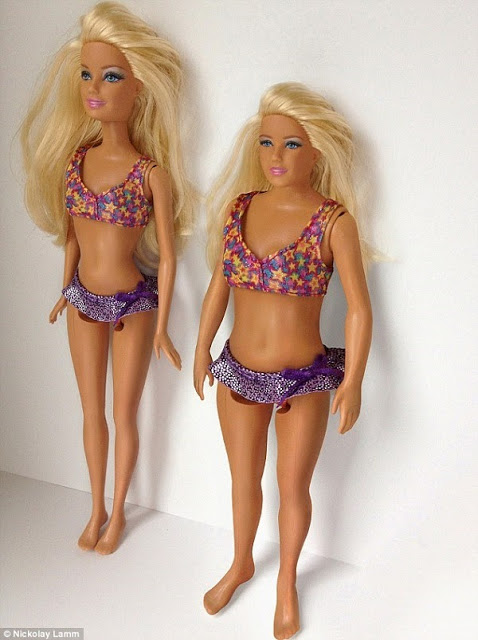 Para finalizar gostaria de deixar a imagem de uma comparação feita pelo artista americano Nickolay Lamn de uma Barbie vendida no mercado atual e uma feita com medidas de mulheres reais.